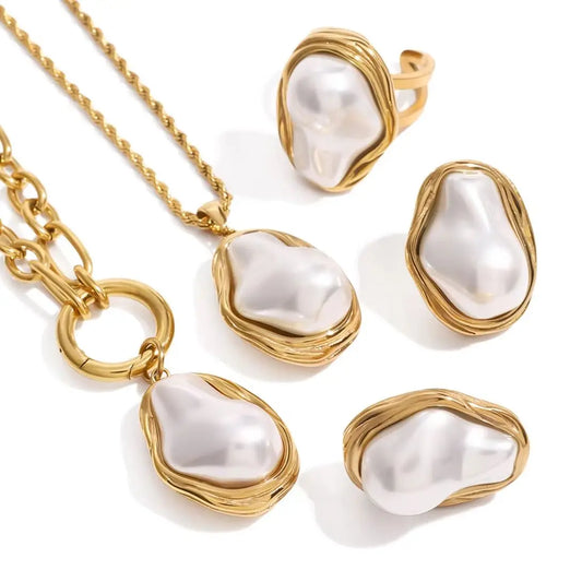 Imitation Pearl Chain Necklace Stainless Steel Jewellery